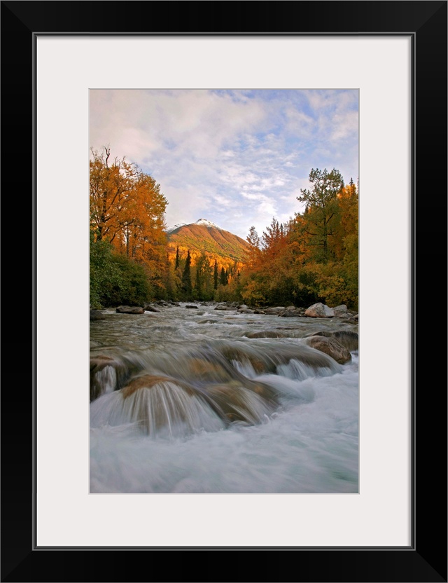 <p>The Little Susitna River at the start of the Hatchers Pass Road in Autumn. Long exposure streaked water. Talkeetna mountains.</p>