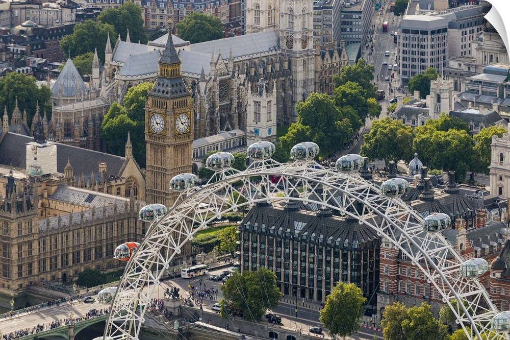 <p>The London Eye and Jubilee Gardens with the Houses of Parliament in the distance, London, England, United Kingdom, Europe</p>