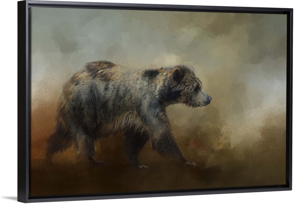 <p>A fine art photograph of a brown bear walking in the mist.</p>