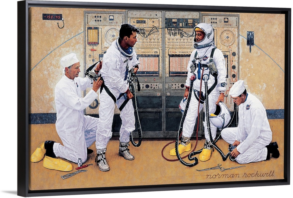 <p>In 1966 Look magazine commissioned Rockwell to paint several works marking the imminent landing of humans on the Moon. Alternate Title Grissom and Young Suiting Up. Approved by the Norman Rockwell Family Agency</p>