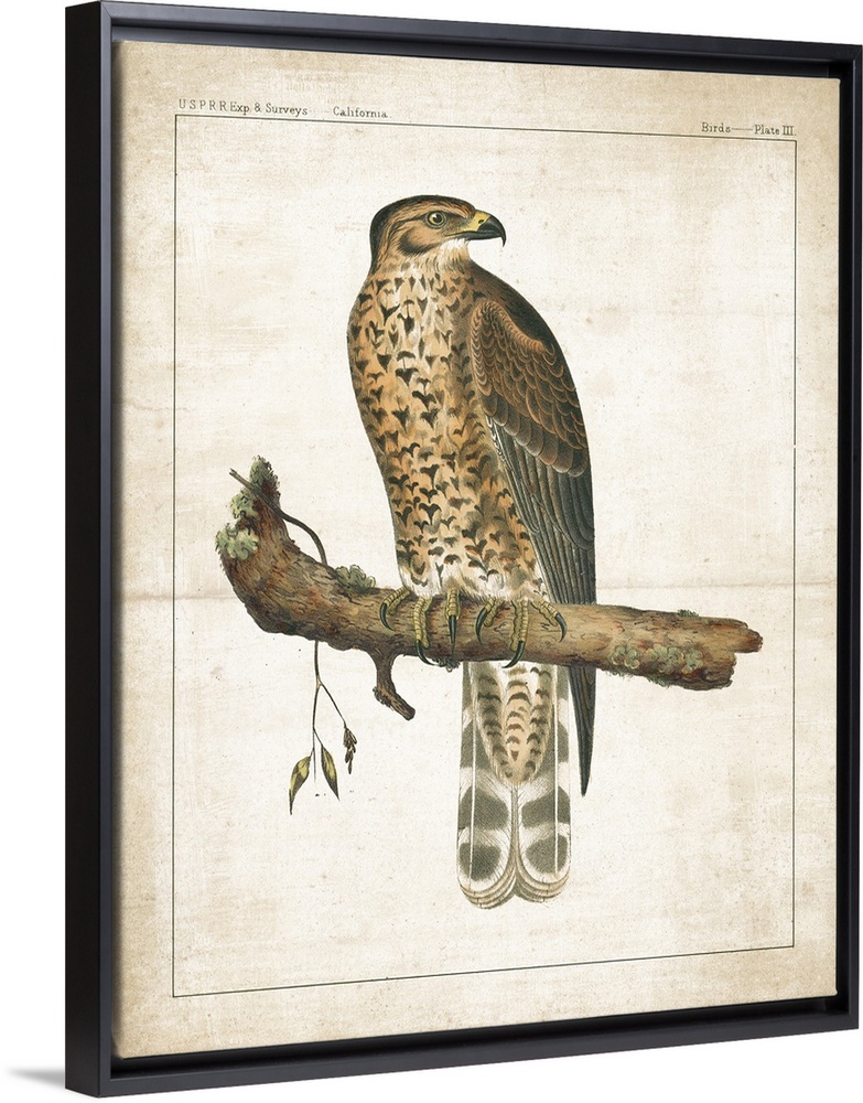 <p>A vintage illustration from a book of a Hawk perched on a branch with long, sharp nails and text at the top.</p>