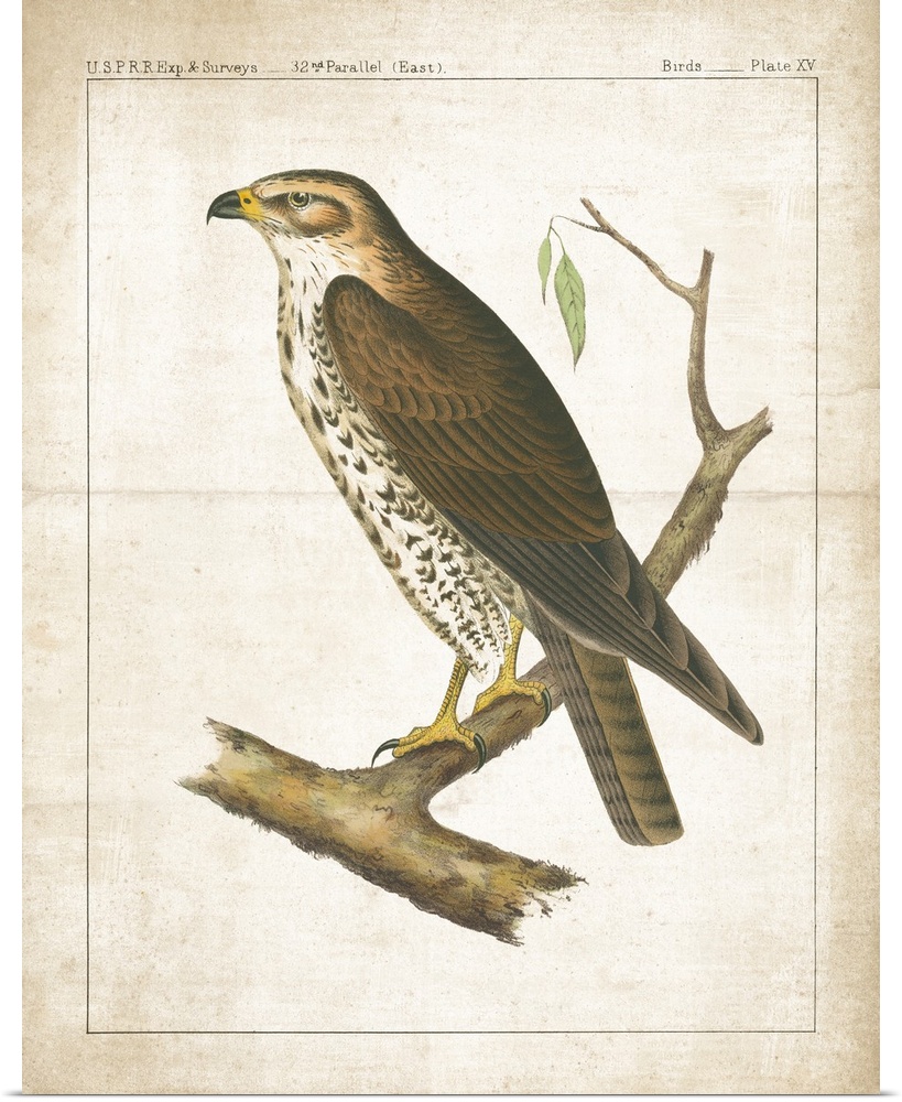<p>A vintage illustration from a book of a Hawk perched on a branch with long, sharp nails and text at the top.</p>