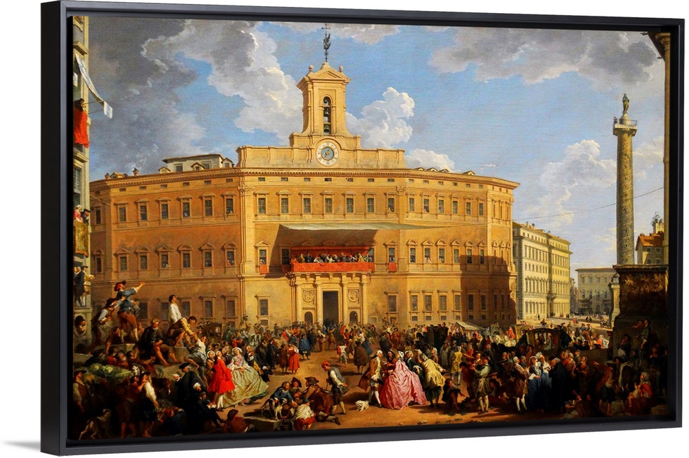 <p>Painting titled 'The Lottery in Piazza di Montecitorio' by Giovanni Paolo Panini, an Italian and architect. Dated 18th Century.</p>