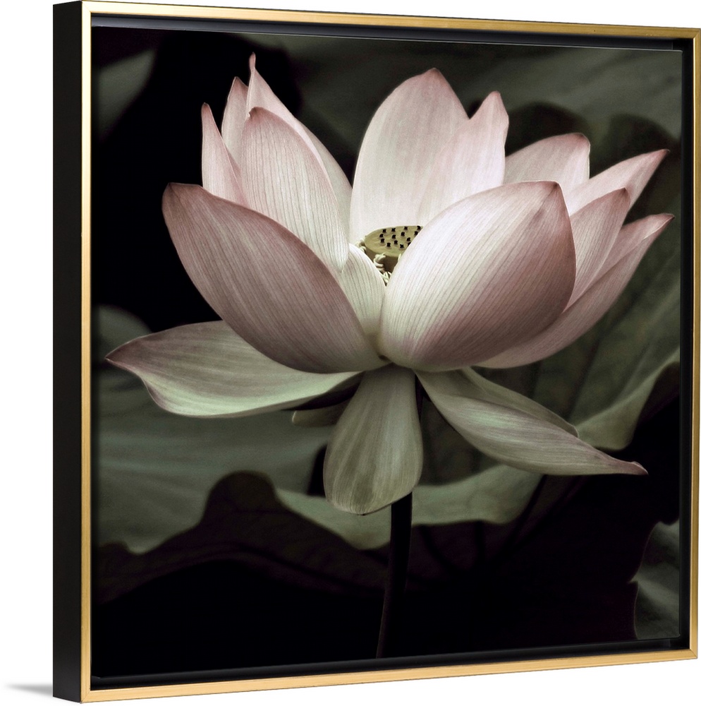 <p>Square photograph of a muted lotus flower.</p>