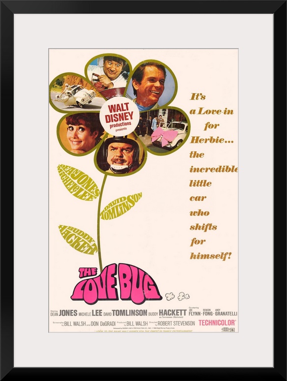 <p>A race car driver (Jones) is followed home by Herbie, a white Volkswagen with a mind of its own. Eventually, Jones follows the Love Bug to a life of madcap fun. Followed by several sequels.</p>