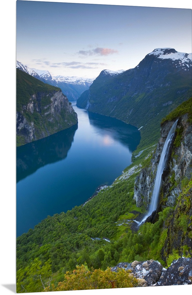 <p>The Majestic Geiranger Fjord illuminated at dusk, Geiranger, More og Romsdal, Norway</p>