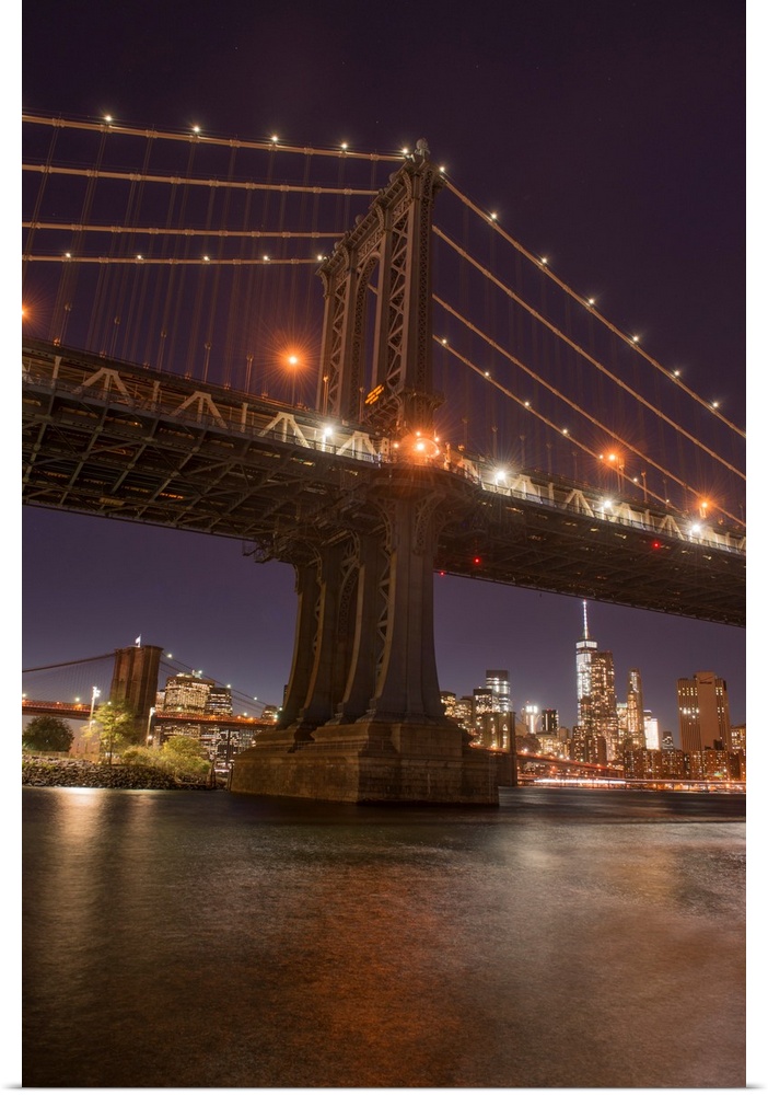 <p>The Manhattan Bridge and Manhattan skyline in the evening light from Brooklyn Bridge Park, New York City, New York</p>