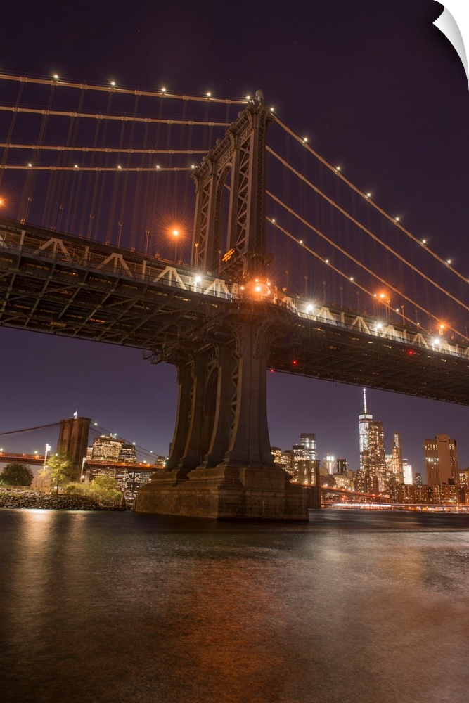 <p>The Manhattan Bridge and Manhattan skyline in the evening light from Brooklyn Bridge Park, New York City, New York</p>