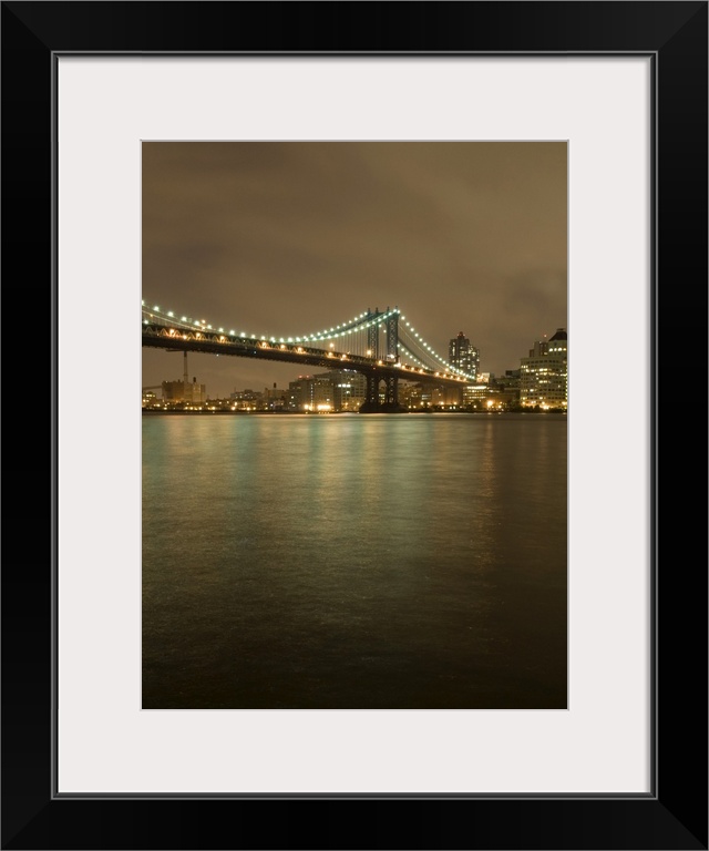 <p>The Manhattan Bridge, the DUMBO neighborhood of Brooklyn and the East River at Night, Viewed from the East River Esplanade in Lower Manhattan, New York City, New York State, USA</p>
