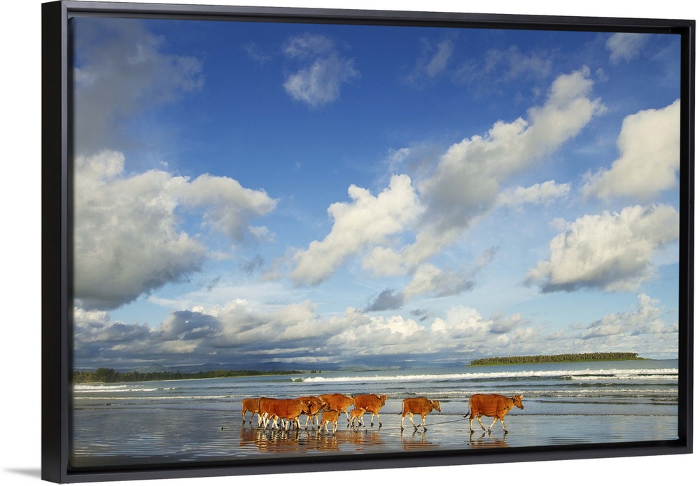 <p>A group of cows walking on beach with beautiful sky and reflection. Photo taken at Sirombu Beach, Nias Island, Indonesia</p>