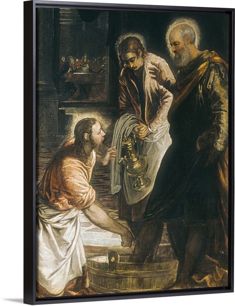 <p>TINTORETTO, Jacopo Robusti, called Il (1518-1594). The Maundy (Christ Washing the Disciples' Feet). 1547. Right detail. Work painted for the church of San Marcuola in Venice. Renaissance art. Cinquecento. Venetian school. Oil on canvas. SPAIN. Madrid. Prado Museum. -</p>