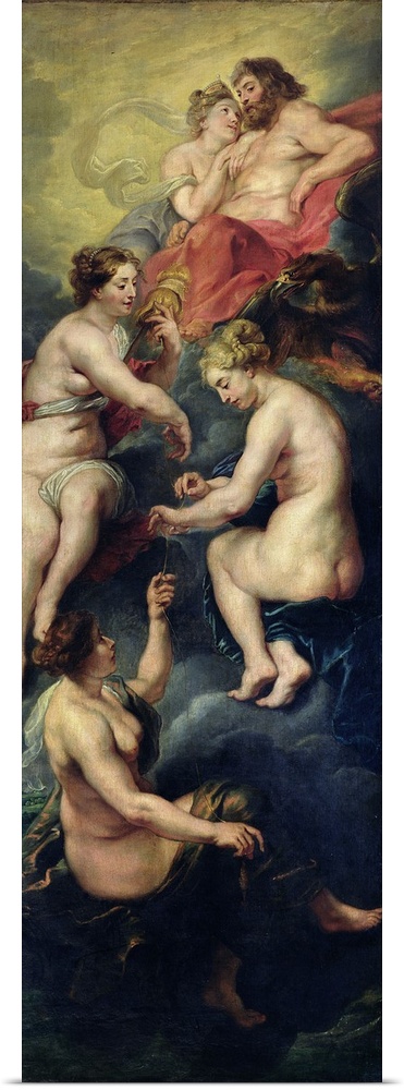 <p>XIR17685 The Medici Cycle: The Three Fates Foretelling the Future of Marie de Medici (1573-1642) 1621-25 (oil on canvas) by Rubens, Peter Paul (1577-1640); 394x295 cm; Louvre, Paris, France; (add. info.: Les Trois Parques Filant le Destin de Marie de Medicis); Giraudon; Flemish, out of copyright</p>