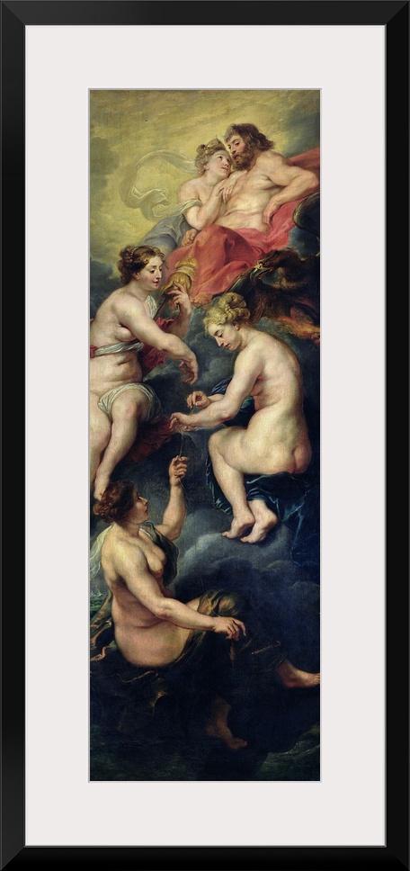 <p>XIR17685 The Medici Cycle: The Three Fates Foretelling the Future of Marie de Medici (1573-1642) 1621-25 (oil on canvas) by Rubens, Peter Paul (1577-1640); 394x295 cm; Louvre, Paris, France; (add. info.: Les Trois Parques Filant le Destin de Marie de Medicis); Giraudon; Flemish, out of copyright</p>