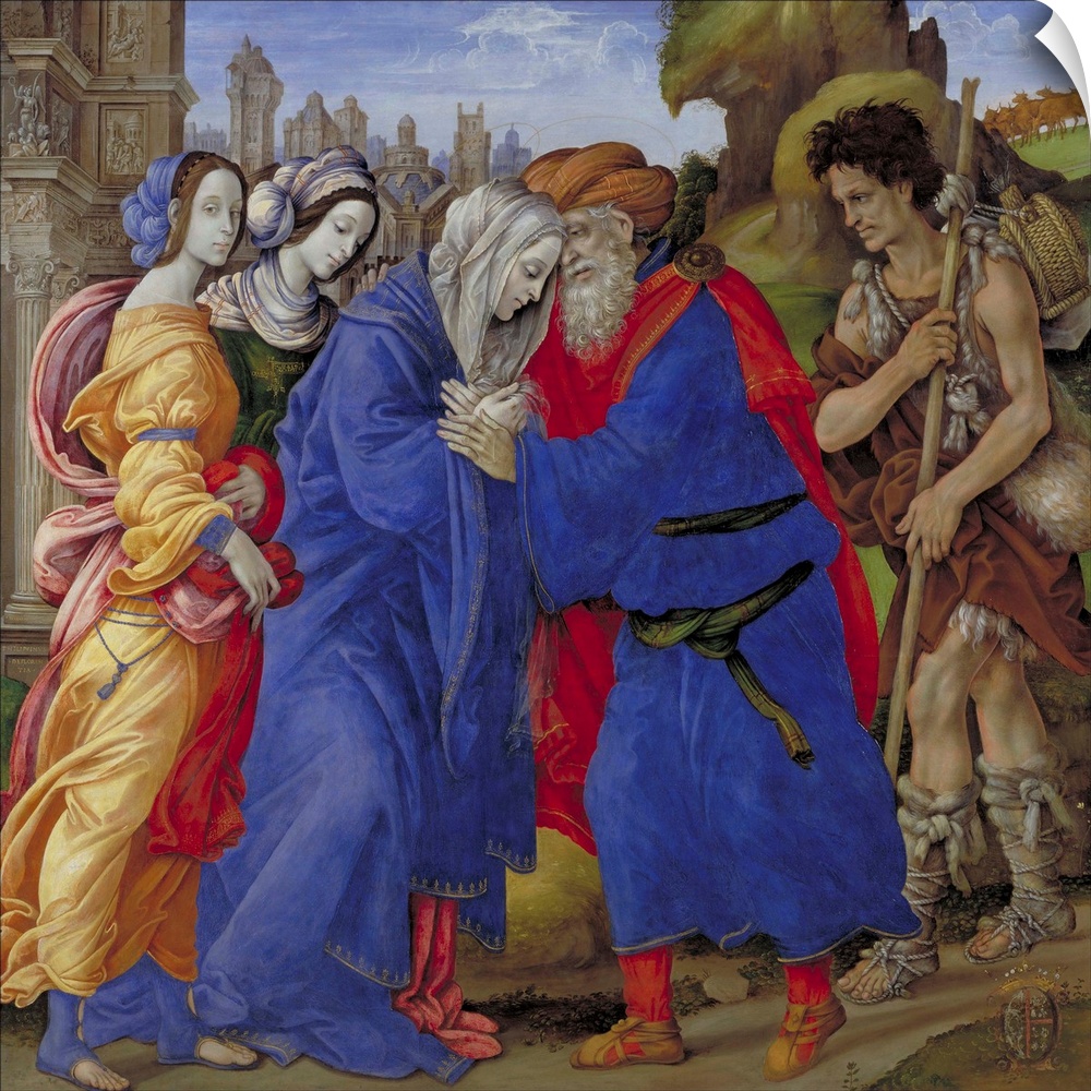 <p>The Meeting of Joachim and Anne outside the Golden Gate of Jerusalem, 1497, tempera on panel. By Filippino Lippi (c.1457-1504).</p>
