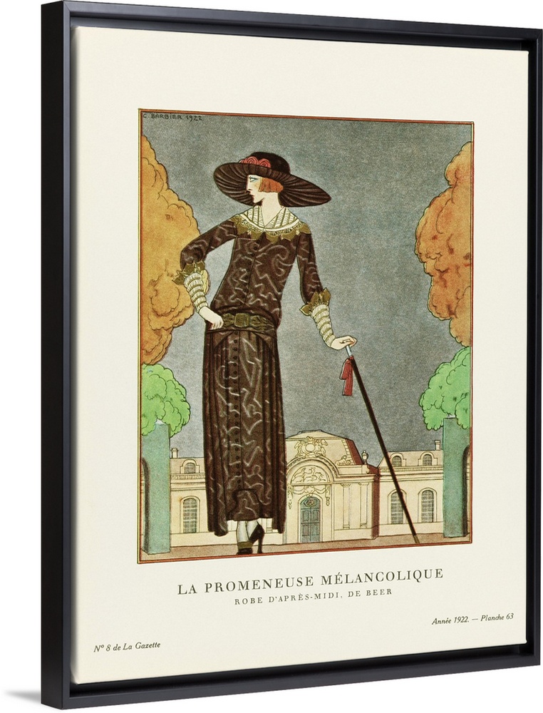 <p>La Promeneuse Melancolique. The Melancholy Walker. Robe d'apres-midi, de Beer. Afternoon dress by Beer. Art-deco fashion illustration by French artist George Barbier, 1882-1932. The work was created for the Gazette du Bon Ton, a Parisian fashion magazine published between 1912-1915 and 1919-1925.</p>
