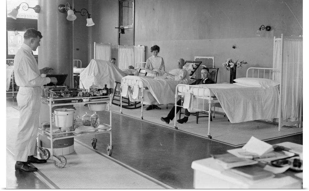 <p>The men's ward at St. Luke's Hospital in New York City. Photograph, c1910</p>