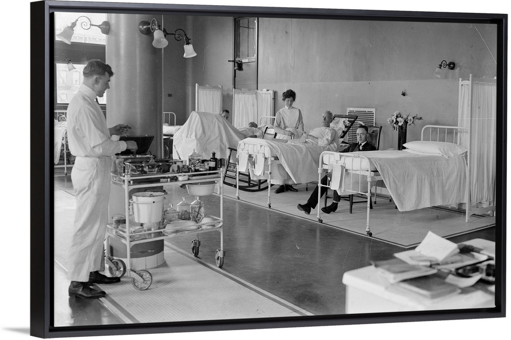<p>The men's ward at St. Luke's Hospital in New York City. Photograph, c1910</p>