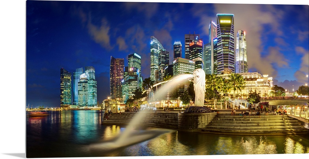 <p>The Merlion Statue with the City Skyline in the background, Marina Bay, Singapore, South East Asia</p>