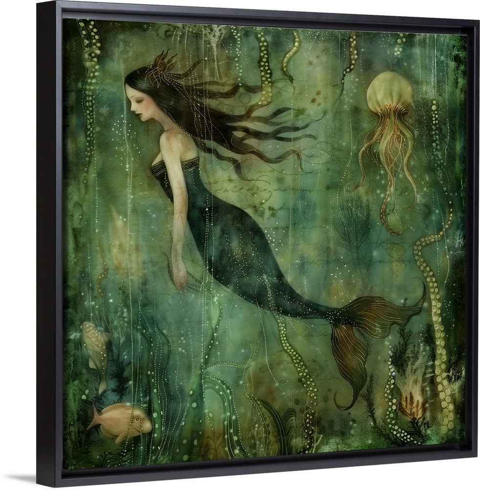 <p>A mermaid swimming in the sea.</p>