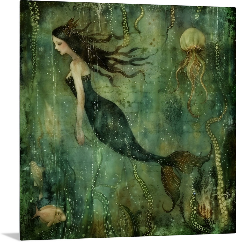 Art WolfBoy Art Fantasy Mermaids Graphic Art Green Wall Art