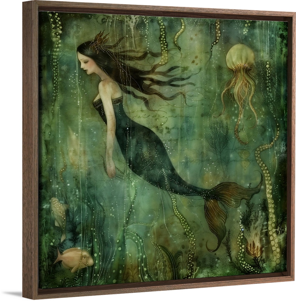 Art WolfBoy Art Fantasy Mermaids Graphic Art Green Wall Art