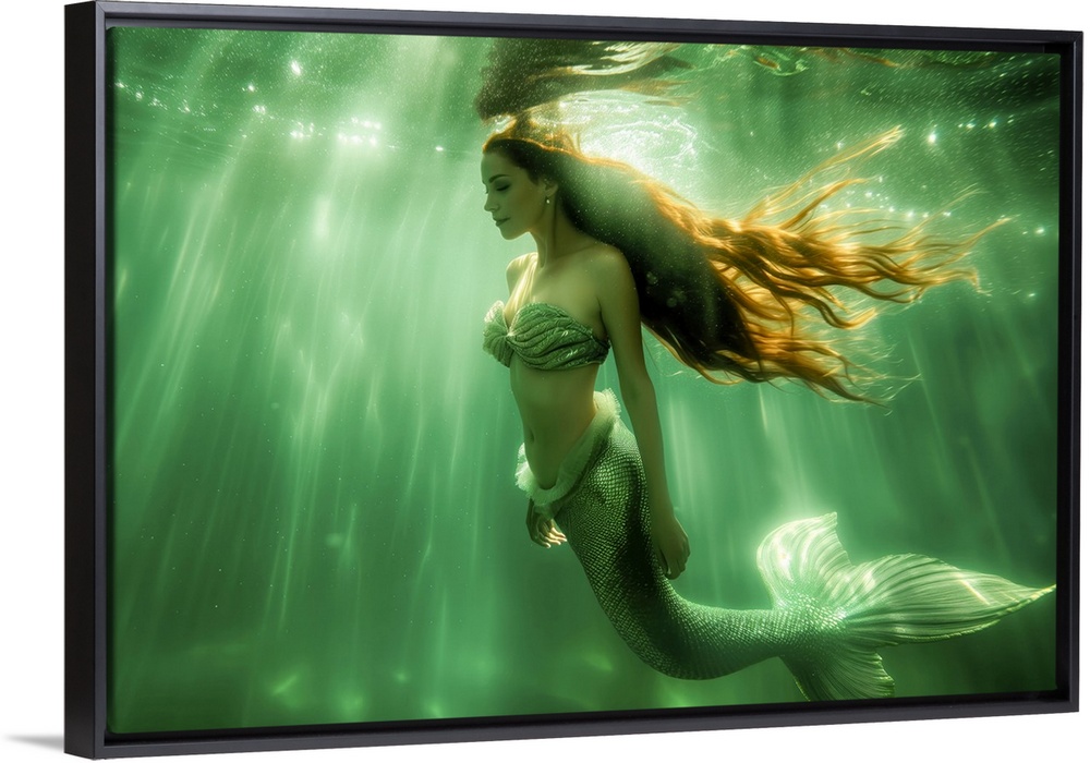 <p>Mermaid with her eyes closed in the ocean.</p>