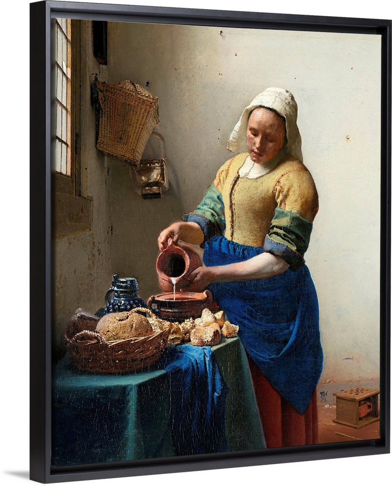 <p>The Milkmaid (Het melkmeisje) or The Kitchen Maid, circa 1658. Oil on canvas, 41 x 45.5 cm. Rijksmuseum, Amsterdam, Netherlands. | Located in: Rijksmuseum.</p>
