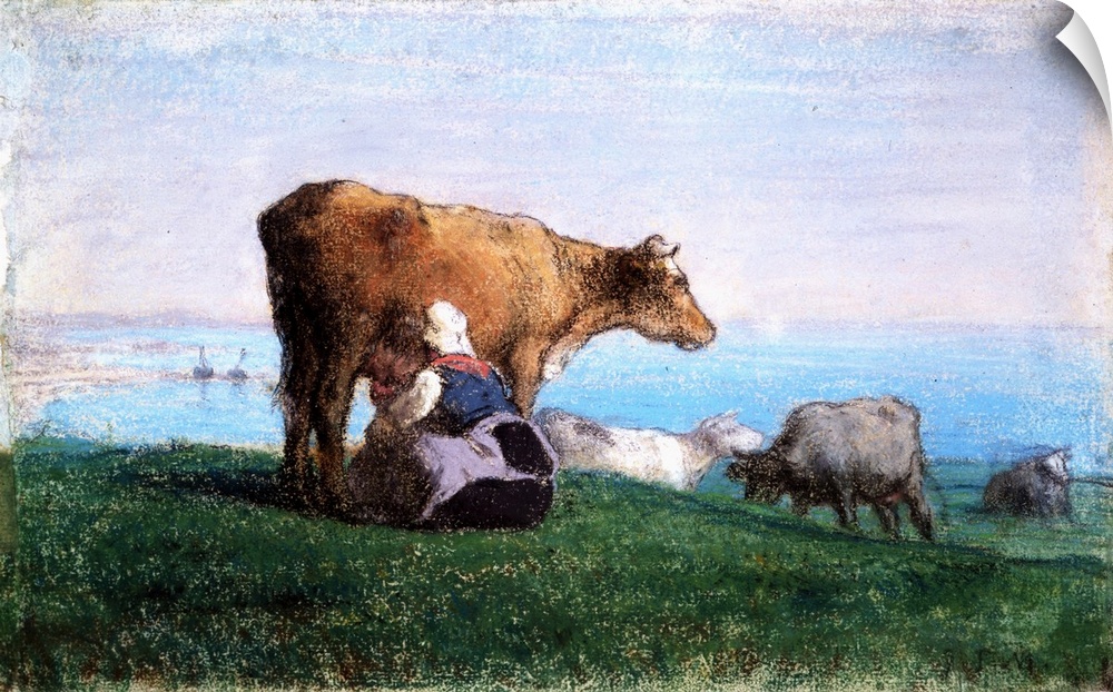 Art Classic Art Modern Art Realism Outdoor Vignettes Wildlife Drawing Jean-Francois Millet People Wildlife Cow