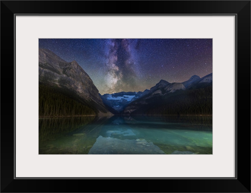 <p>The Milky Way over glacier-fed Lake Louise and Victoria Glacier in Banff National Park, Alberta, Canada</p>