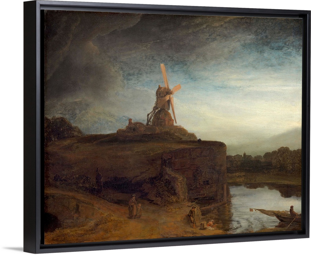 Art Classic Art Baroque and Rococo Classic Art by Subject Rivers, Lakes and Oceans Landscapes Cliff Windmill Painting Rembrandt van Rijn