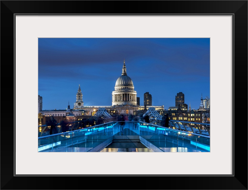 <p>The Millennium footbridge and St Paul's Cathedral at night.</p>