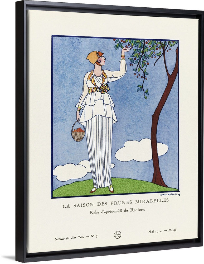 <p>La Saison des Prunes Mirabelles. The Mirabelle plum season. Robe d'apres-midi de Redfern. Art-deco fashion illustration by French artist George Barbier, 1882-1932. The work was created for the Gazette du Bon Ton, a Parisian fashion magazine published between 1912-1915 and 1919-1925.</p>