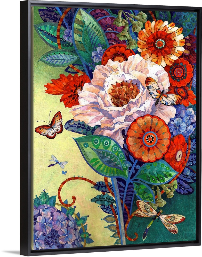 <p>Contemporary artwork of colorful and decorative flowers.</p>