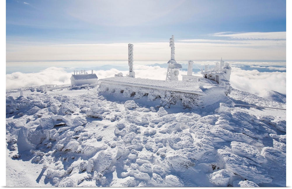 <p>The Mount Washington observatory, completely covered in rime ice.</p>