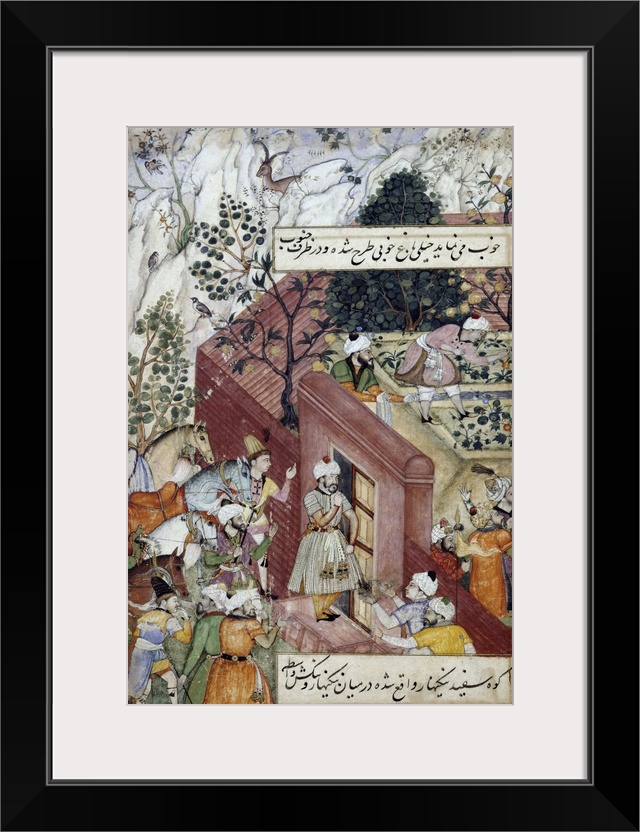 <p>Outside the gates, the Emperor's retinue wait with his horses; made for Emperor Akbar (r.1556-1605);</p>