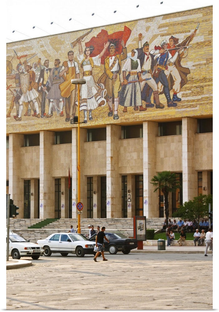 <p>The museum of national history with a big mosaic on the facade depicting a national heroic scene The Tirana Main Central Square, Skanderbeg Skanderburg Square. National Historic Museum. Tirana capital. Albania, Balkan, Europe.</p>
