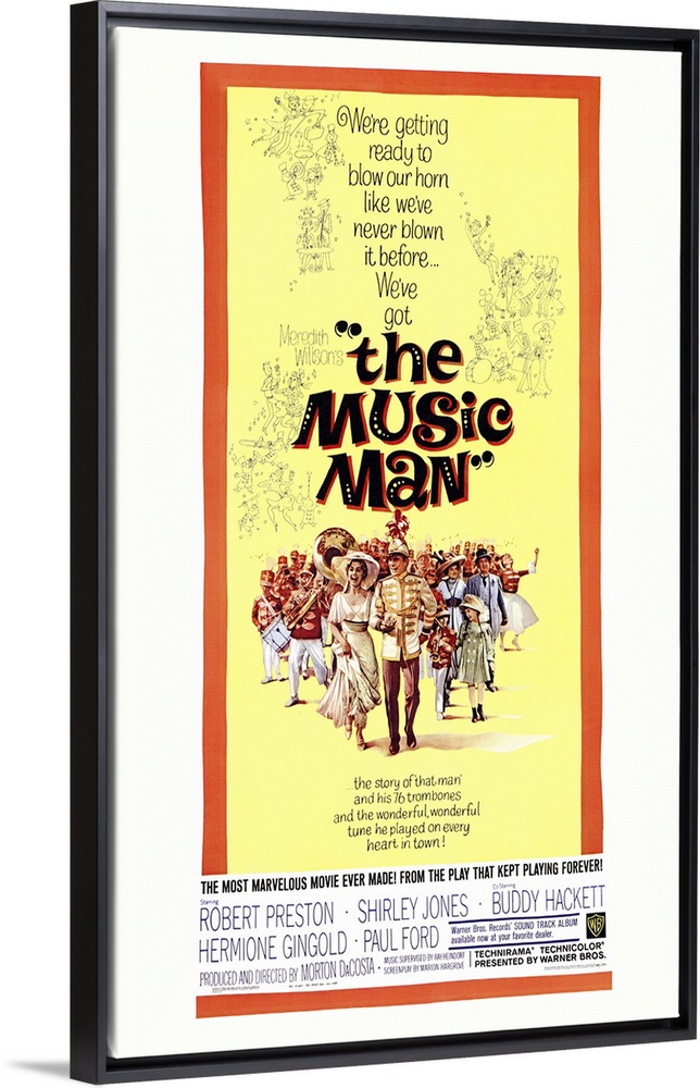 <p>Con man in the guise of a traveling salesman gets off the train in River City, Iowa. After hearing about plans to build a pool hall, he argues it would be the gateway to hell for the young, impressionable males of the town. He then convinces the River Cityzens to look toward the future of the community and finance a wholesome children's marching band. Although the huckster plans to take their money and run before the instruments arrive, his feelings for the town librarian cause him to think twice about fleeing the Heartland. This isn't just a slice of Americana; it's a whole pie. Acting and singing are terrific with a capital 'T' and that rhymes with 'P' and that stands for Preston, who epitomizes the charismatic pitchman.</p>