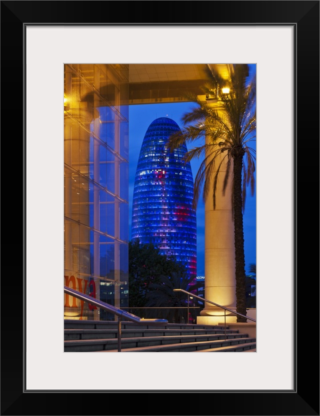<p>The National Theatre of Catalunya NTC with the Torre Agbar designed by the architect Jean Nouvel in the background, Fort Pienc, Barcelona, Cataluna, Spain.</p>