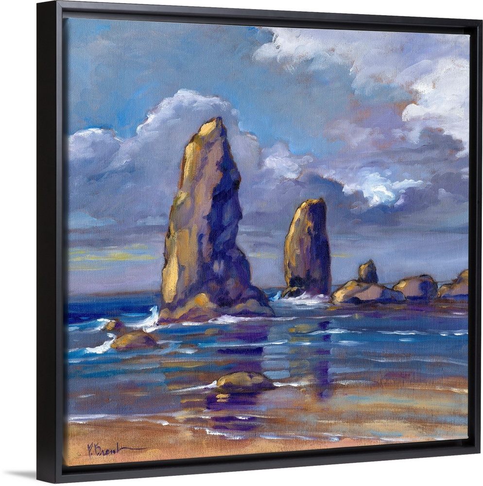<p>Landscape painting of the tall rock landmarks on the Oregon coast.</p>