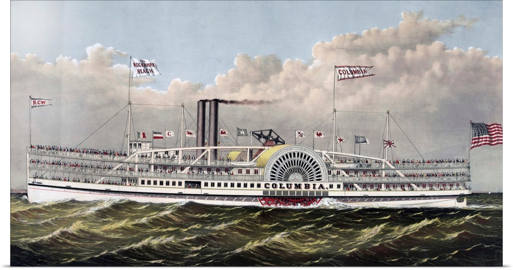 <p>The new excursion steamer Columbia: 'gem of the ocean' Published by Currier & Ives, c1877.</p>