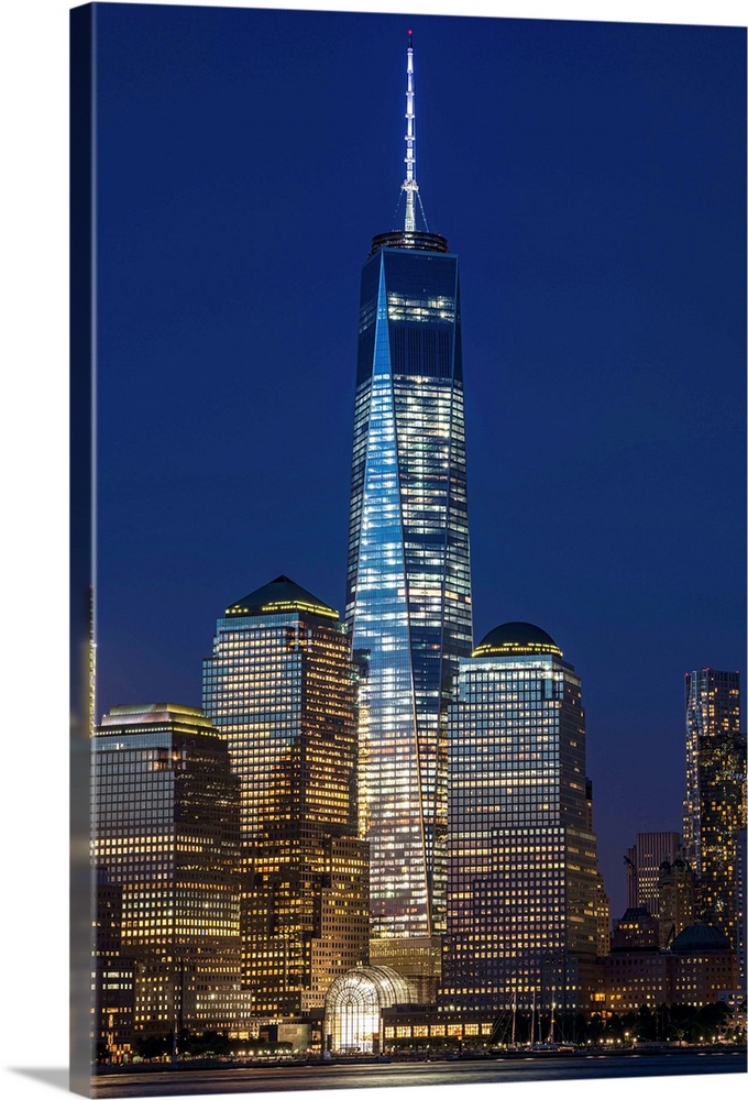 <p>The new World Trade Center at twilight, viewed from Jersey City, New Jersey. New York City, New York, United States of America.</p>