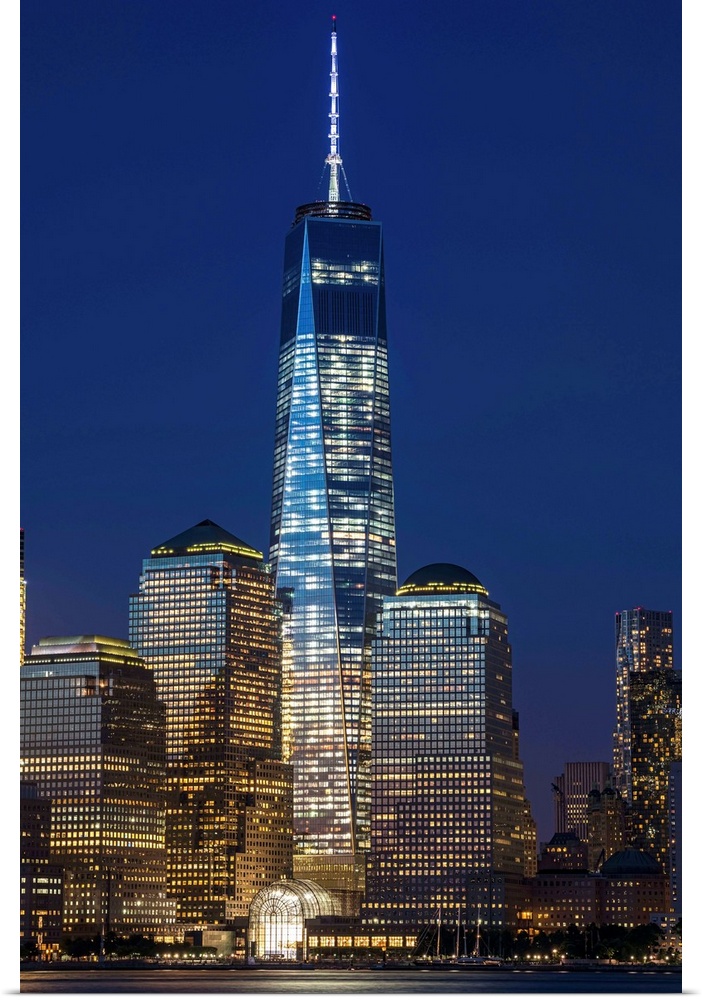 <p>The new World Trade Center at twilight, viewed from Jersey City, New Jersey. New York City, New York, United States of America.</p>