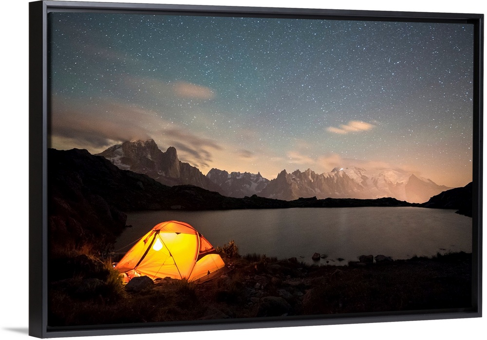 <p>The Night In The Tent In Front Of Mont Blanc From Lac De Chesery, Haute Savoie, France</p>