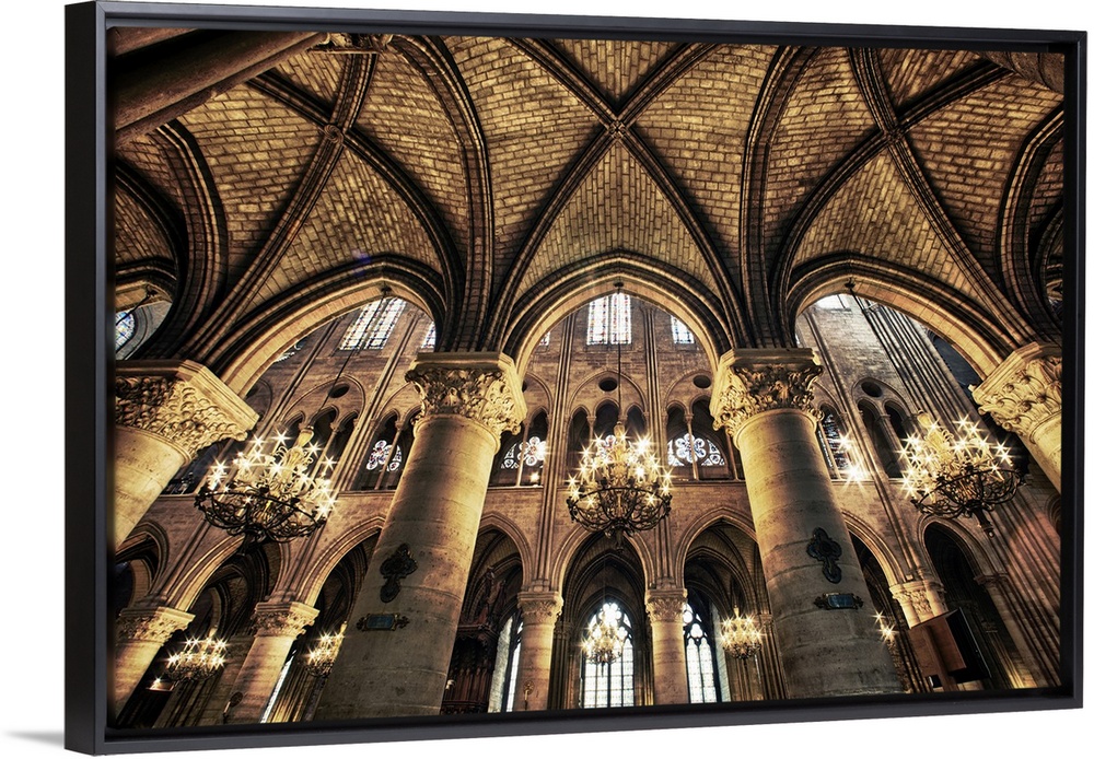 <p>This photograph is taken inside of the Notre Dame Cathedral looking up at the beautiful arch ceiling.</p>