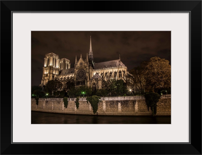 <p>The Notre Dame Cathedral in Paris at night</p>