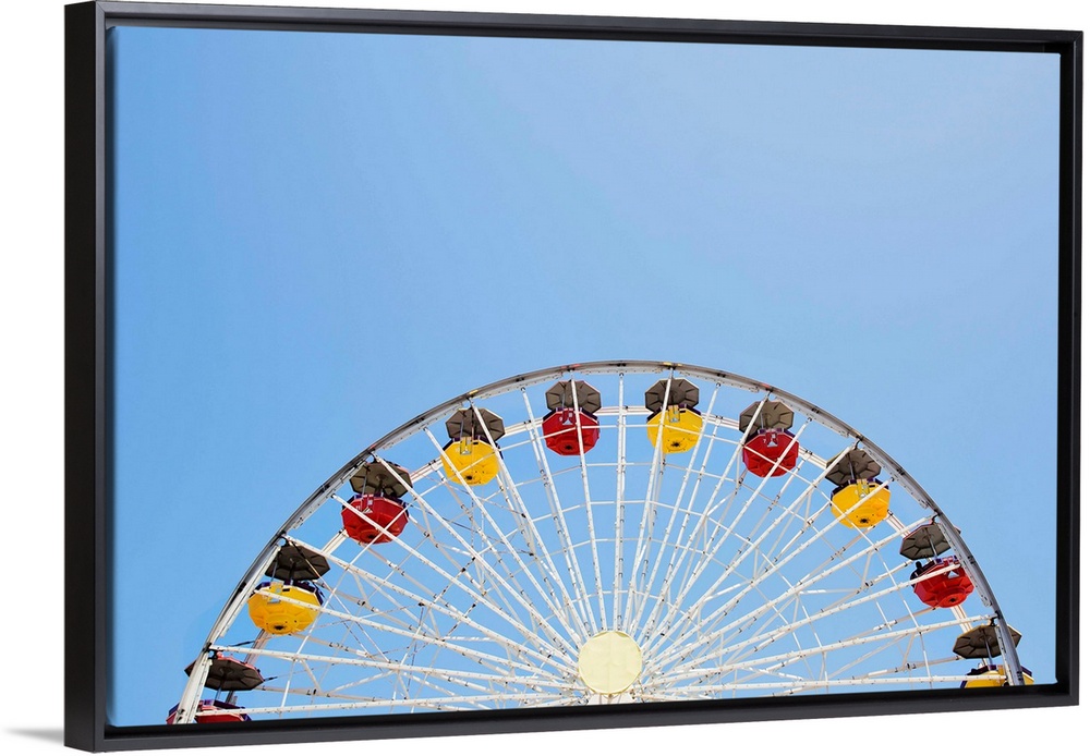 <p>Photograph of a yellow and red Ferris Wheel against a bright, clear, blue sky.</p>