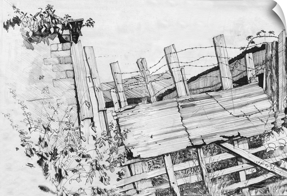 <p>Sketchbook drawing of abandoned agricultural building in Devon, England.</p>