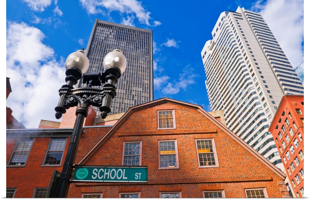 <p>The Old Corner Bookstore on School street (skyscrapers visible), Freedom Trail, Boston, Massachusetts USA</p>