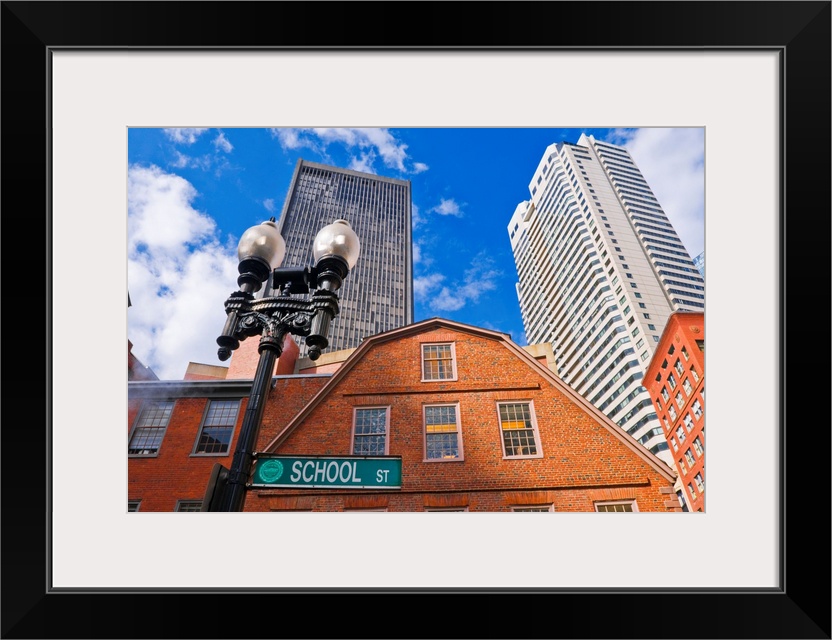 <p>The Old Corner Bookstore on School street (skyscrapers visible), Freedom Trail, Boston, Massachusetts USA</p>