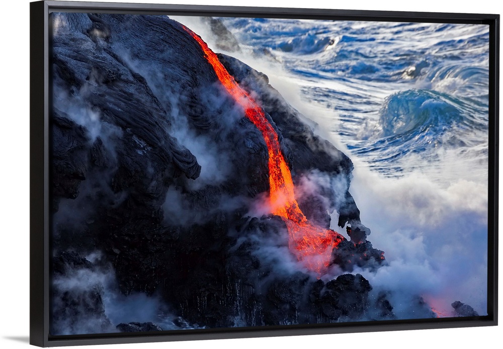 <p>The Pahoehoe lava flowing from Kilauea has reached the Pacific ocean near Kalapana; Island of Hawaii, Hawaii, United States of America</p>